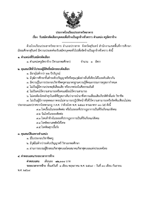 รับสมัครครูอัตราจ้างพลศึกษา 8 เมษายน 2026 adminita ข่าวประชาสัมพันธ์กลุ่มบริหารงานบุคคล, ประชาสัมพันธ์กลุ่มสาระ/กิจกรรมของโรงเรียน/ห้องเรียนพิเศษ อ่านประกาศฉบับเต็ม(PDF) Leave a comment
